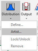 To open the Distribution Artist window, click the Distribution button drop-down menu (the lower half of the button) and select 'Artist' (Figure 1, right). Depending on the contents of the currently selected cell, a different view of the Distribution Artist will open.