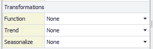 The Transfomation fields (Figure 2, right) are used to apply Transformation to the data values generated for a time series model. See Time Series Transformations for a complete discussion on using transformations.