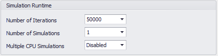 These options (Figure 2, right) control the most fundamental aspects of a simulation run - the number of iterations and how many simulations should execute during a single run. The options are:
