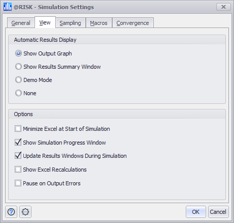 • View Options - Settings for how @RISK and Excel will behave during a simulation run.
