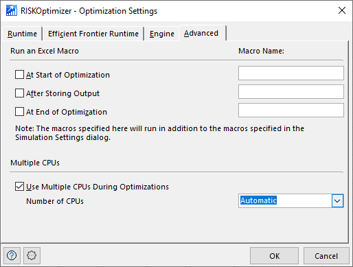 In addition to Macro settings, there are two options that control how multiple CPUs should be used during an optimization.