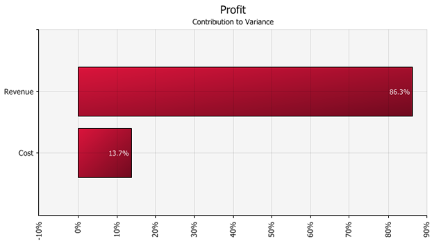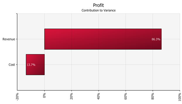 • For example, consider the 'Contribution to Variance' tornado graph for an output - Profit - and two inputs, Revenue and Cost, in Figure 3 below. This graph does not have the 'Use Direction of Bar to Indicate Input Output Relationship' option enabled.