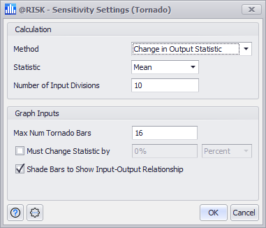 Figure 1 - Sensitivity Settings Window (Tornado Graph)