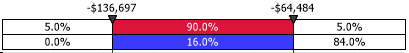 The delimiter calculations are summarized succinctly in the delimiter bar at the top of the graph. In the example above, the left delimiter is set at the 5th percentile which has a value of -$138,360, the right delimiter is at the 95th percentiles which has a value of -$64,046.
