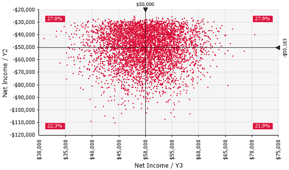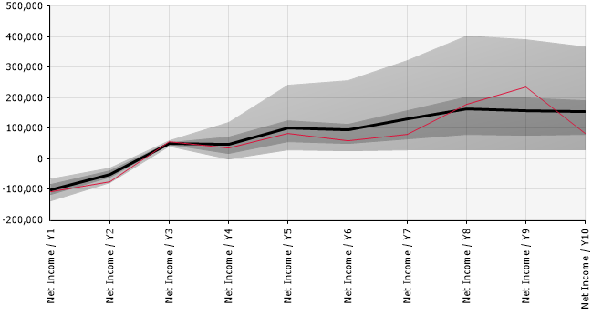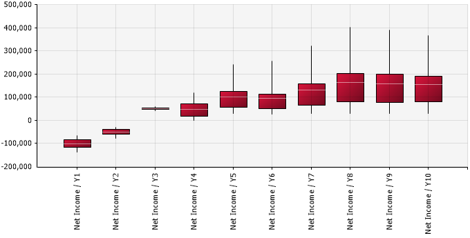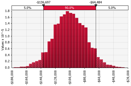 A distribution graph shows the range of possible outcomes and their relative likelihood of occurrence.
