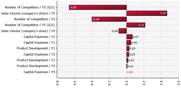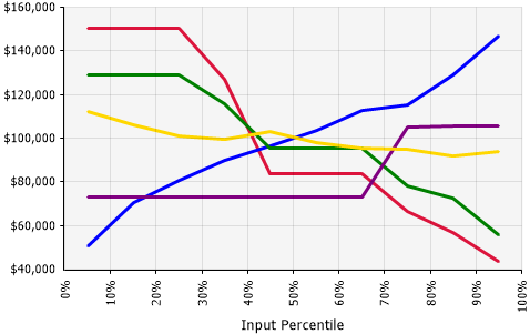 A spider graph shows how the value of an output statistic changes as the sampled input value changes.