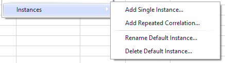 Unless a correlation was created using the Define Repeated Correlation option, a correlation or copula will initially include only a single instance. The Instance submenu (Figure 2, right) of the Edit Correlation/Edit Copula command button includes the following options for working with instances: